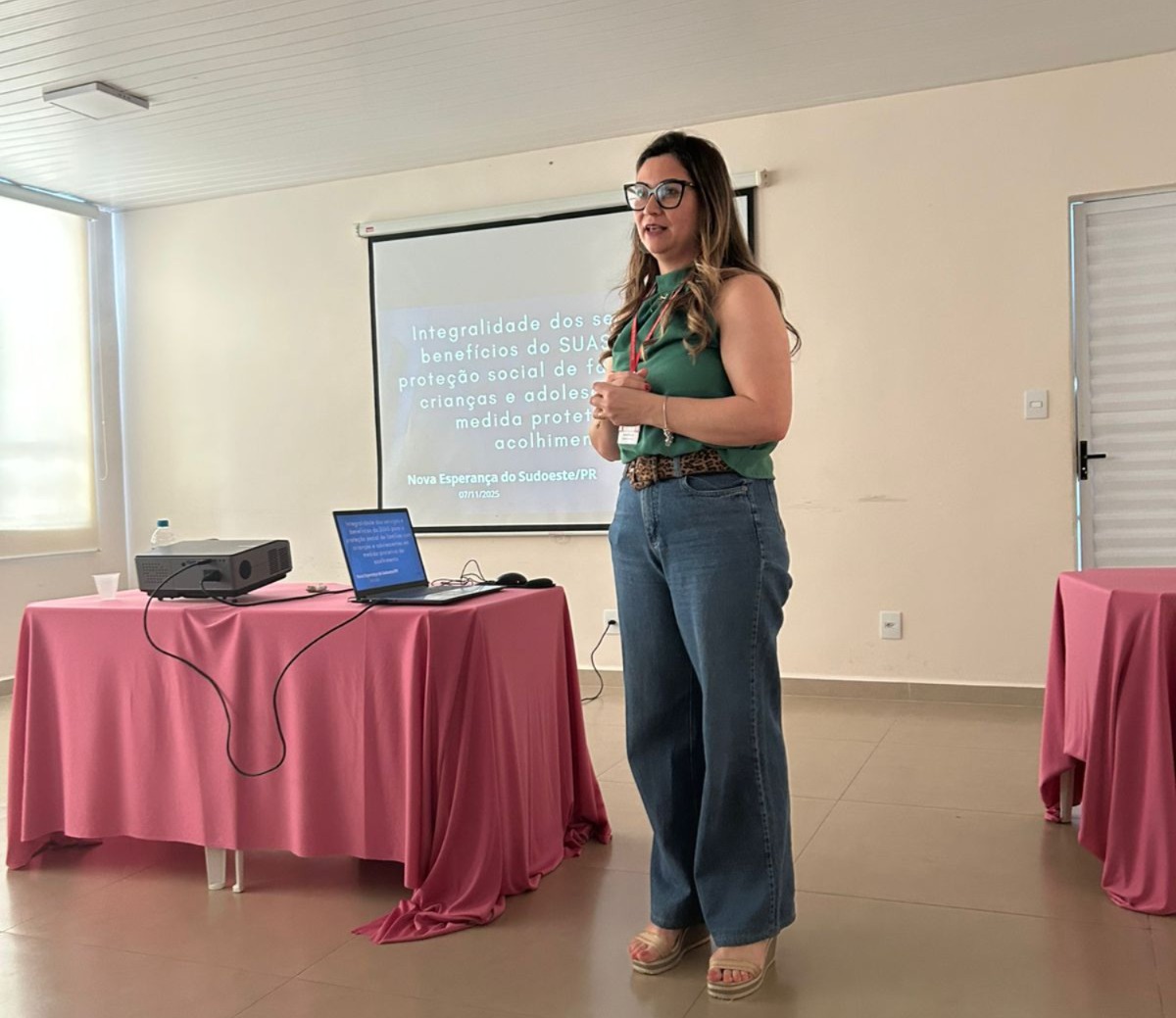 No dia 07 de novembro de 2025, a equipe da Casa Lar esteve presente em uma capacitação realizada na Secretaria Municipal de Assistência Social de Nova Esperança do Sudoeste. O encontro ocorreu no período da tarde e foi conduzido por Gabriella Mariano Munhoz Zenerratti, Assistente Social da 4ª URATE/MPPR e mestre em Serviço Social e Política Social.